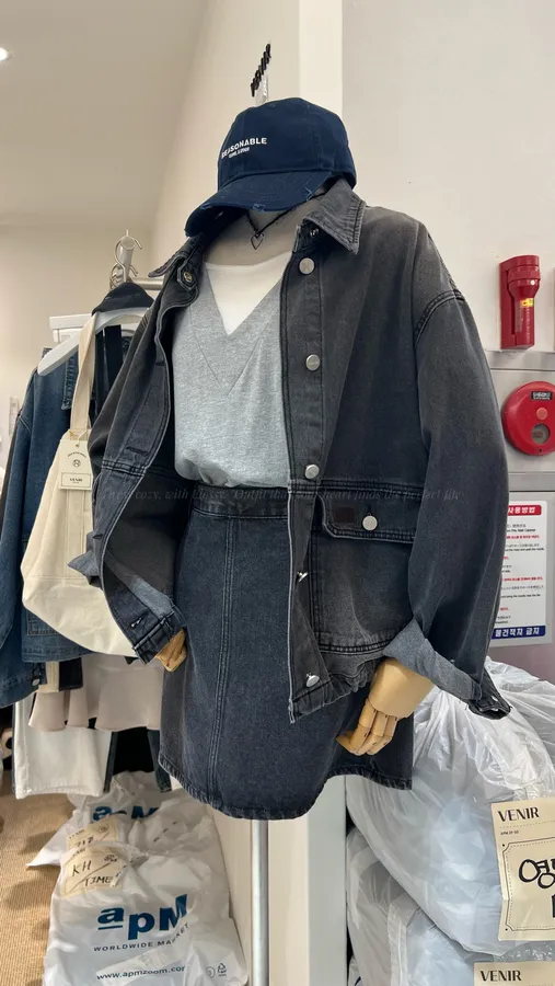 G256 口袋皮標造型牛仔外
