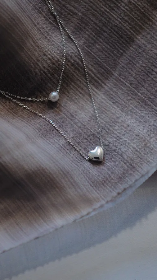 G277 珍珠愛心雙層925純銀項鍊