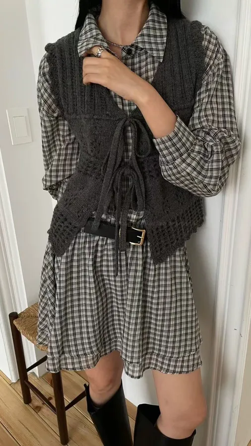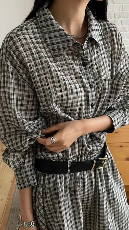 G318 格紋縮腰設計襯衫洋 -闆娘清單🧾