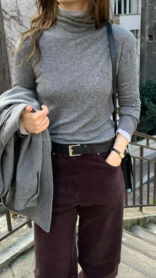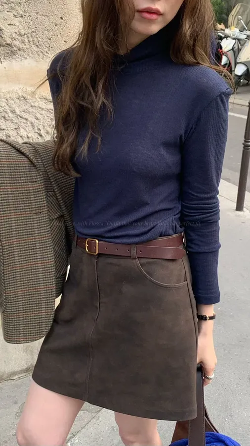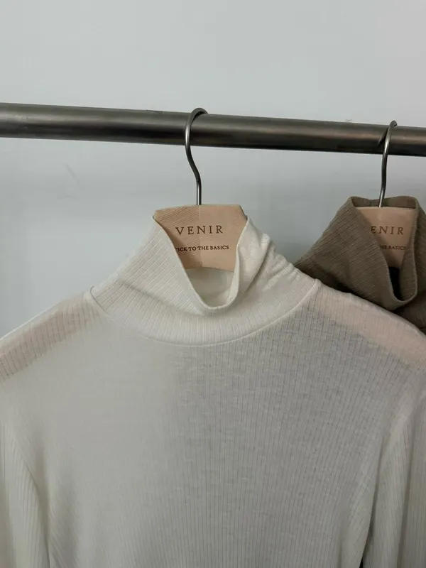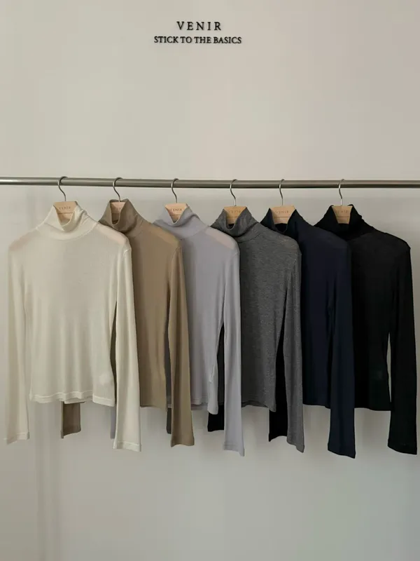 G348 微高領透肌坑條打底衣 -羊毛30%天絲70%