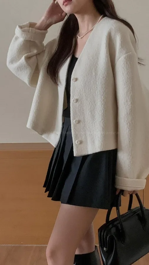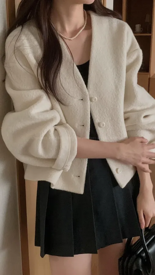 G367 100%羊毛無領排釦繭型外 -闆娘清單🧾