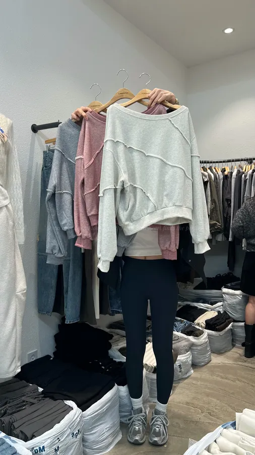 G374 不修邊造型斜肩大學T (必收❤️‍🔥本檔制服!不無聊、隨性穿就很有型的實穿單品)