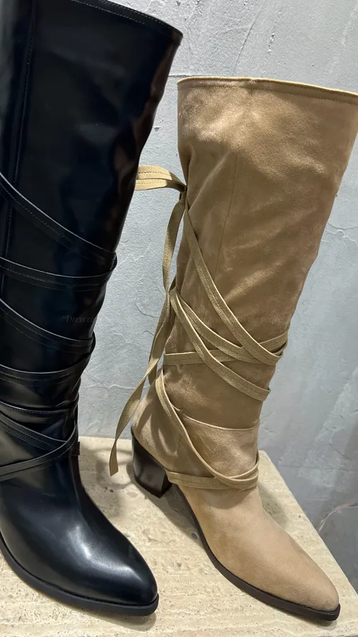G422 繞繩綁帶造型長靴 -偏小半號 ,闆娘腳23拿23.5