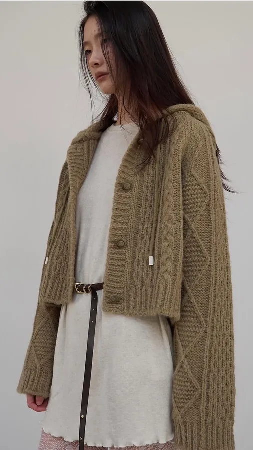 G429 78%羊駝麻花連帽排釦衫 (必收❤️‍🔥剛剛好的份量,不會胖胖的麻花~連帽好美)
