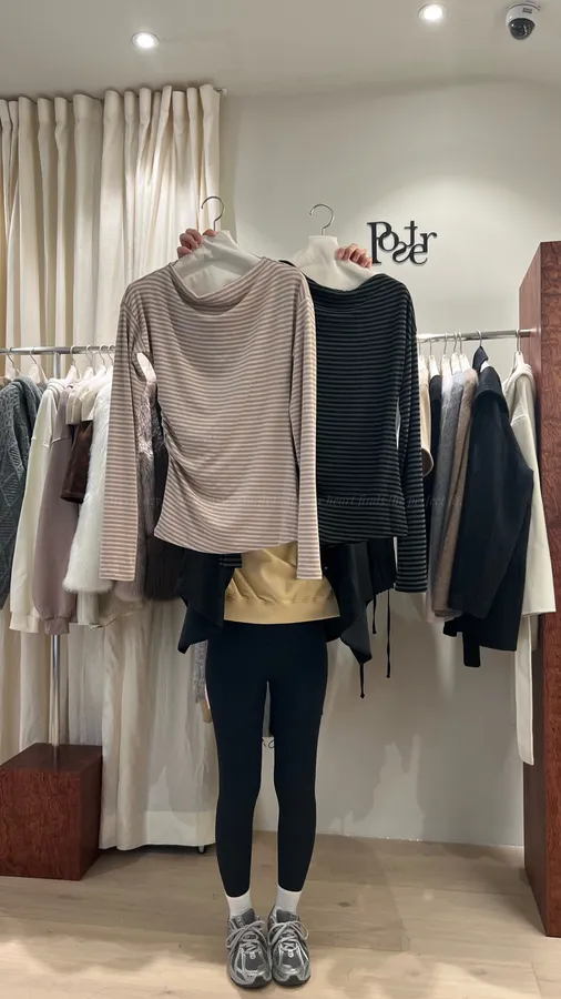G434 削肩領條紋側抓皺上衣 -闆娘清單🧾