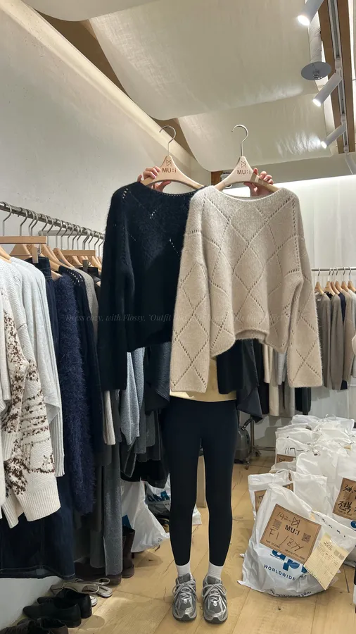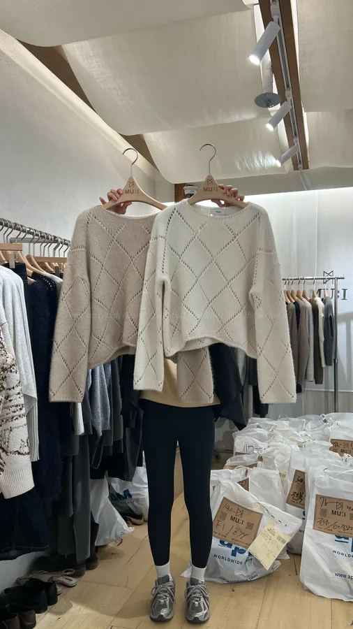 G448 菱紋簍空造型上衣 -浣熊毛25%狐狸毛25%羊毛25%