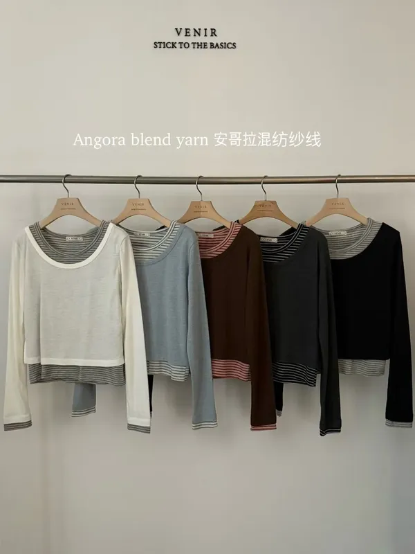 G461 安格拉混紡紗線拼接上衣
