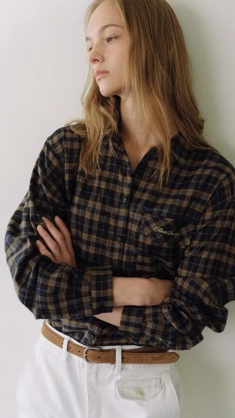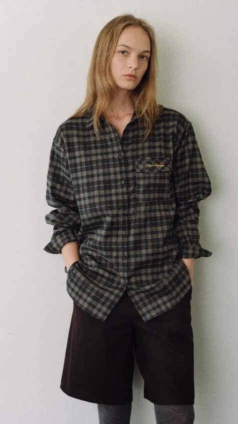 G563 刺繡配色格紋襯衫