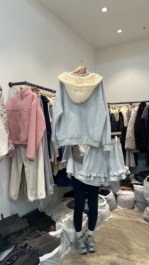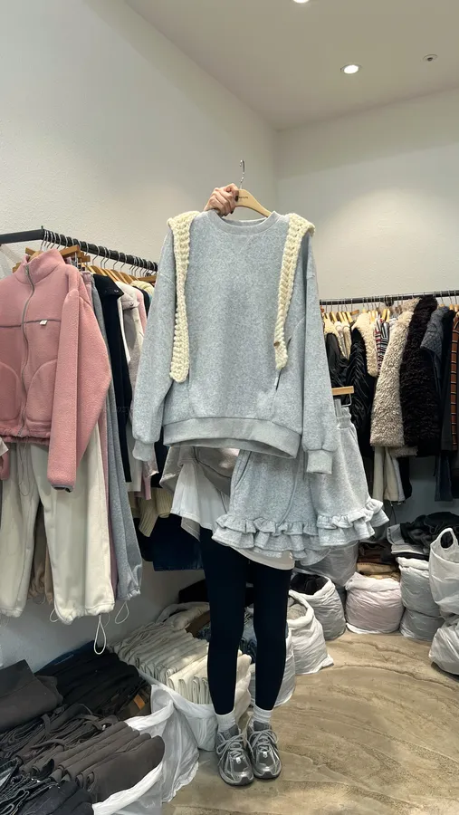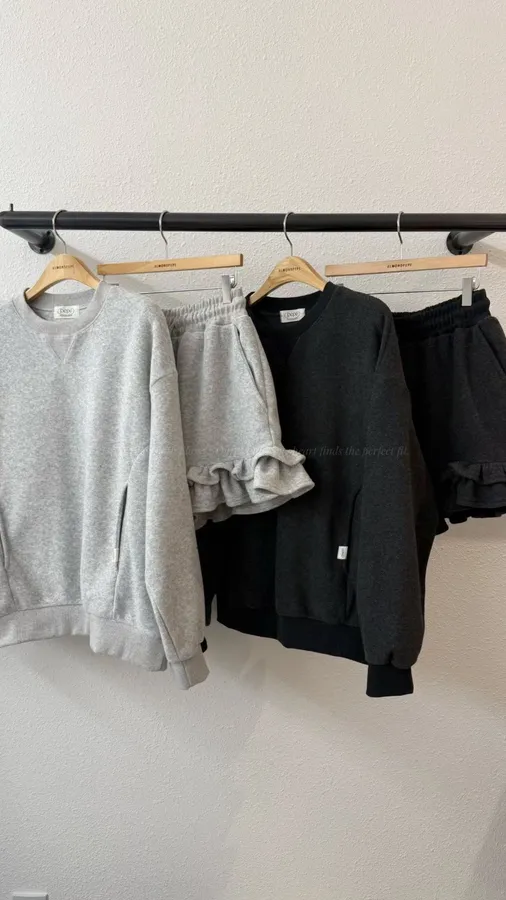 G599 內刷毛口袋上衣+荷葉短褲SET