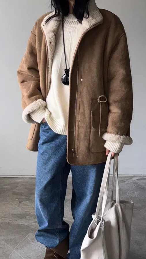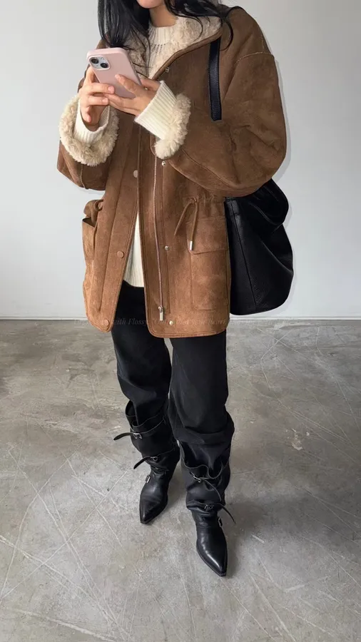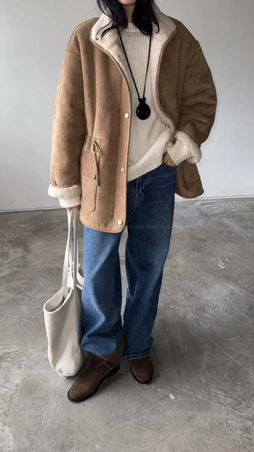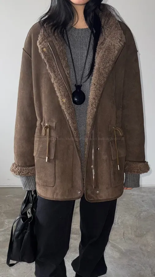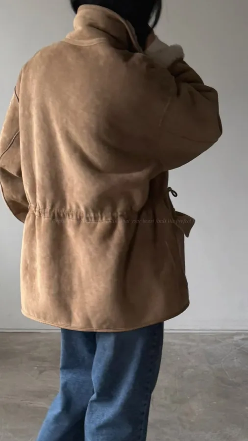 G646 100%羊毛縮腰麂皮外套