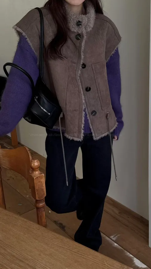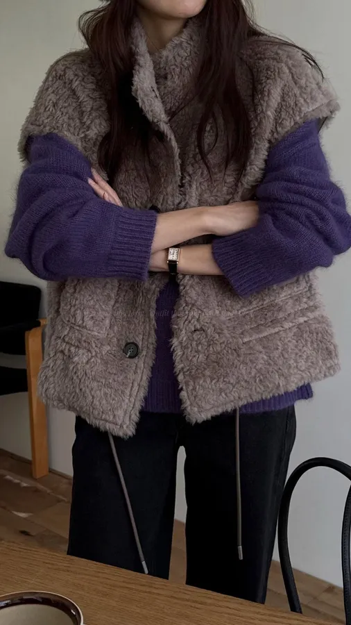 G652 100%羊毛皮毛一體雙面背心(必收❤️‍🔥本檔最最最喜歡!怎麼有那麼漂亮的背心啦