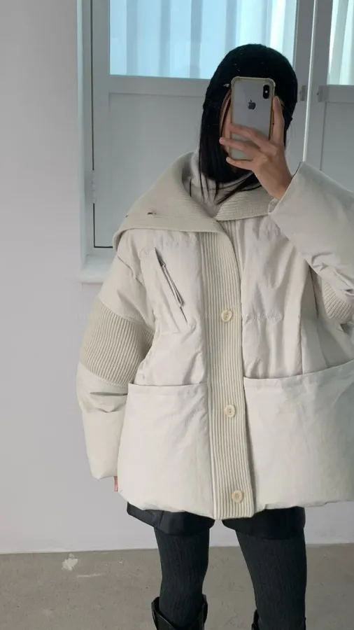 G678 90%鴨絨針織翻領造型外