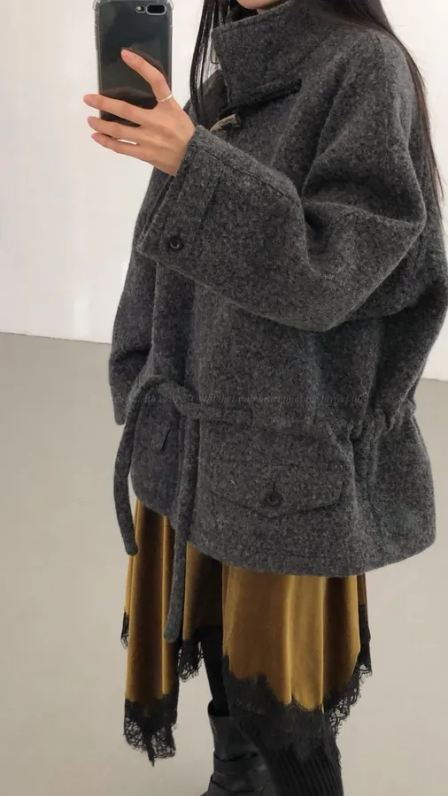 G684 75%羊毛牛角釦綁帶大衣 -珊珊清單🧾