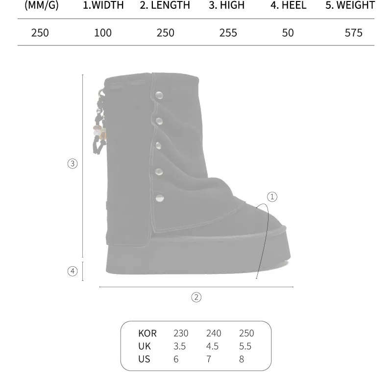 *소재갑피: COW SUEDE 100%, POLYURETHANE 100%안감: FAUX FUR (ACRYLIC) 100%인솔: WOOL 20%, FAUX FUR (ACRYLIC) 80%아웃솔: EVA 100%, BLOWN RUBBER 100%