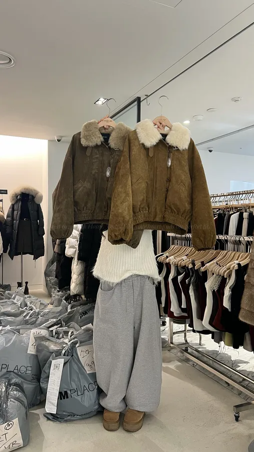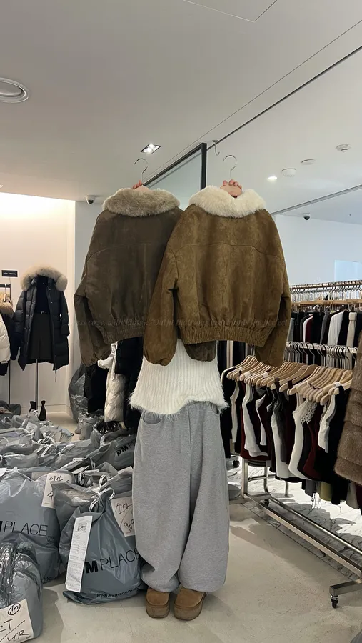 G711 100%鴨絨輕量麂皮毛領外