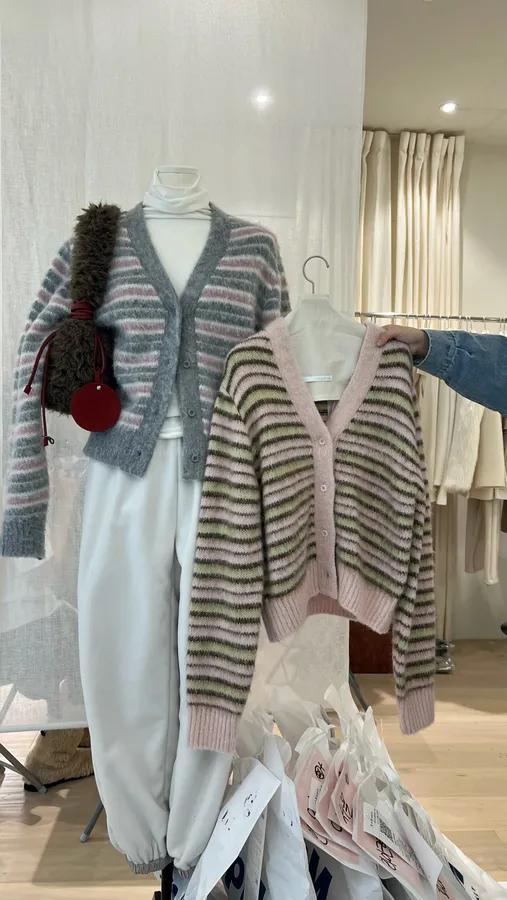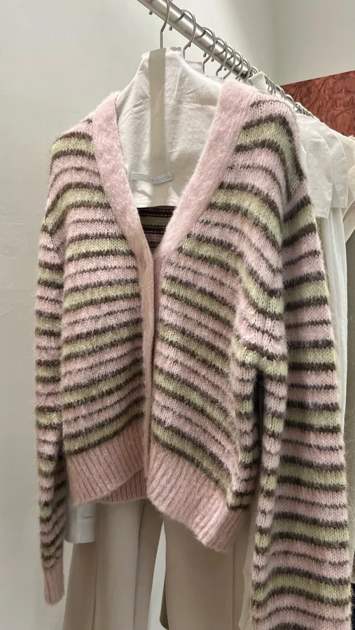 G737 5%羊駝20%羊毛條紋開襟外