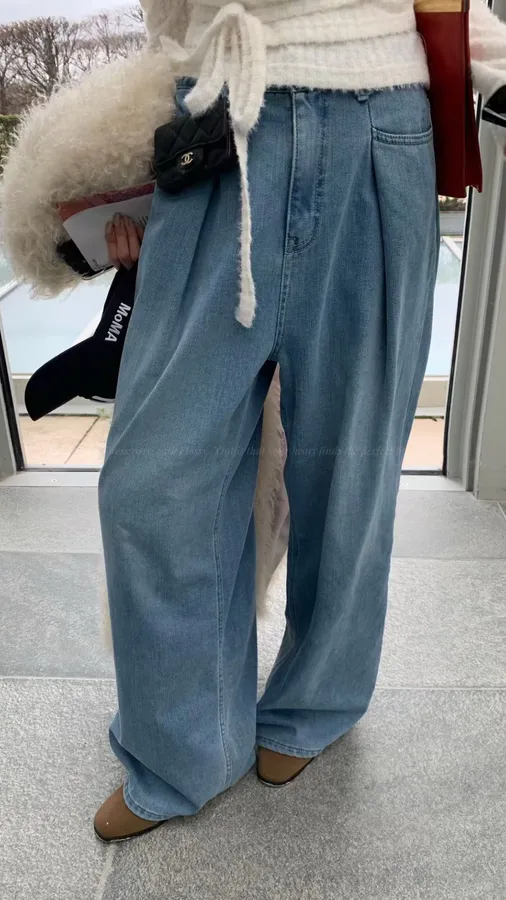 G738 加絨打褶剪裁牛仔褲 -偏大,高個友善款