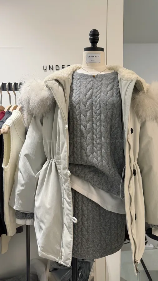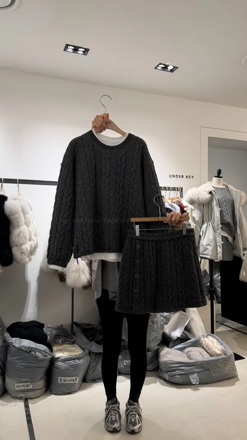 G766 5%羊毛麻花質感三件組套裝 -白T、上衣、褲裙