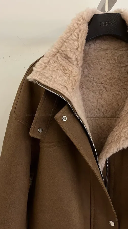G846 100%羊毛麂皮中長版外套