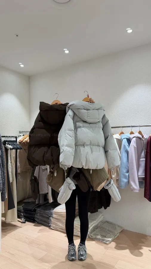 G861 100%鴨絨簡約百搭連帽外套 -附手套
