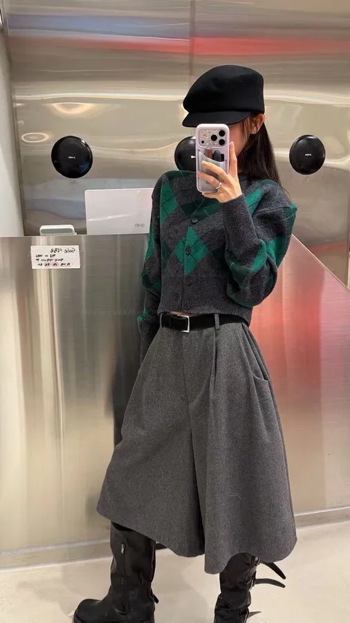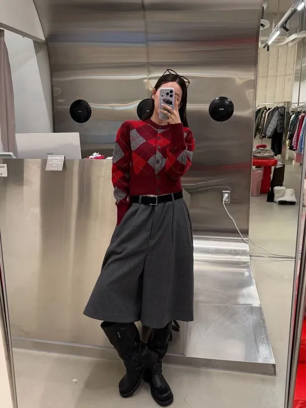 G874 80%羊毛菱紋合身中短版上衣