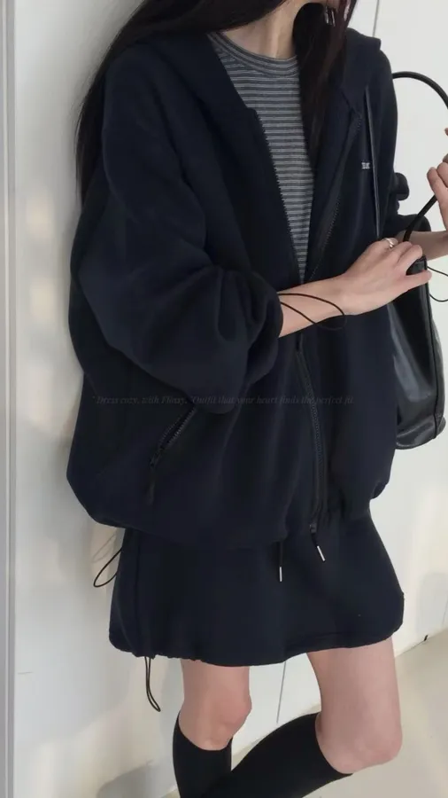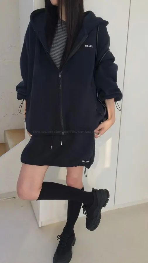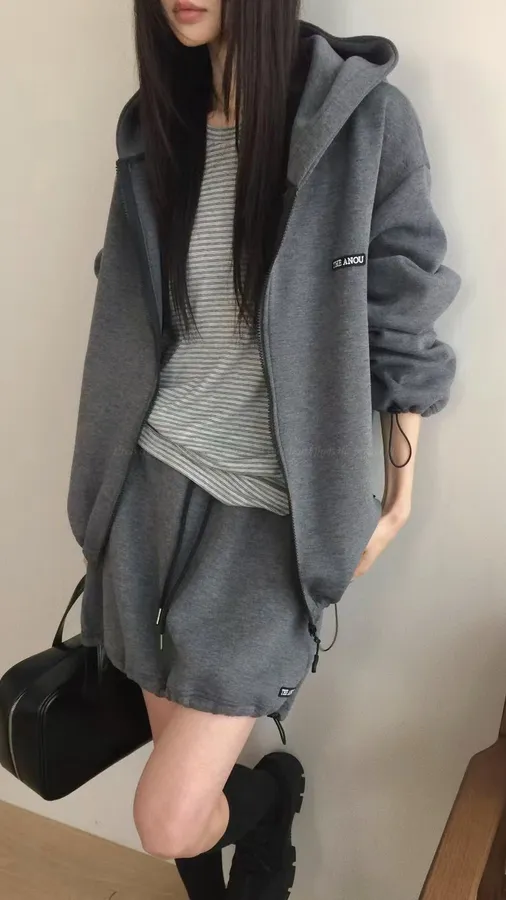 H075 休閒連帽拉鍊外+褲裙SET