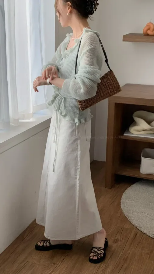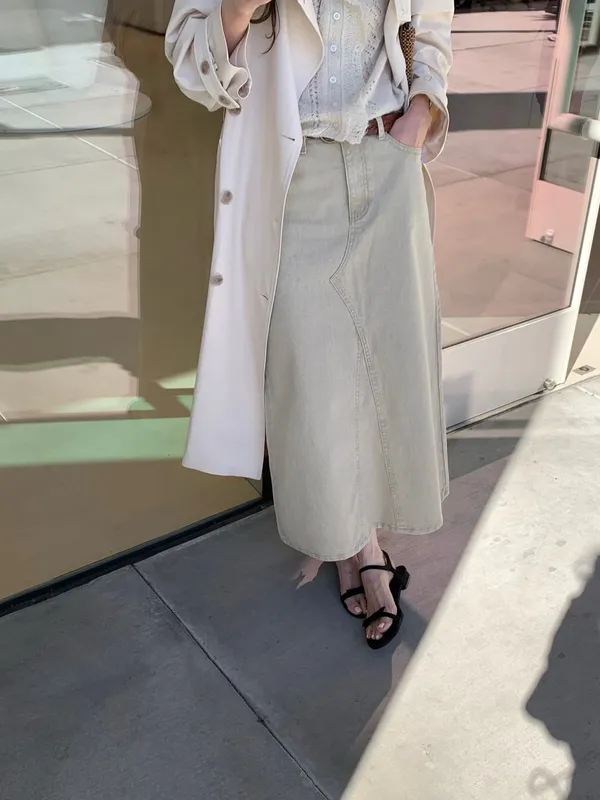 H087 薄款簡約後開岔裙
