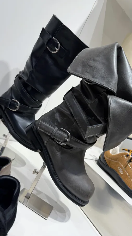 H098 中高筒反摺個性靴 -偏小半號 ,闆娘腳23拿23.5
