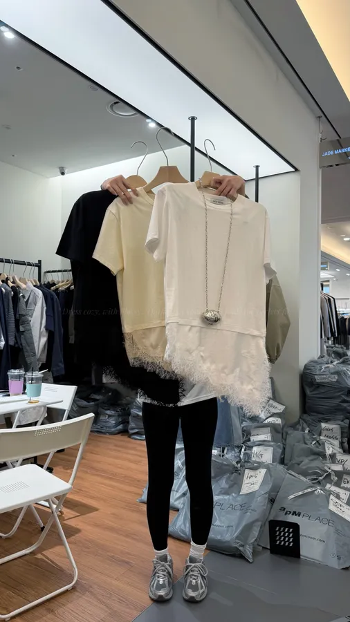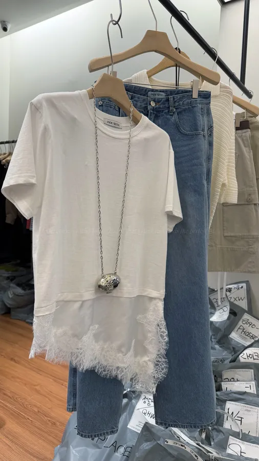 H167 拼接睫毛蕾絲T