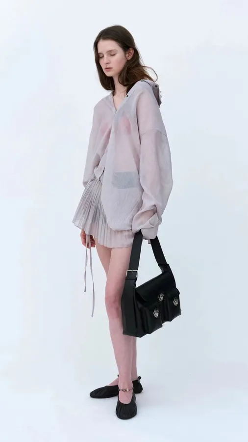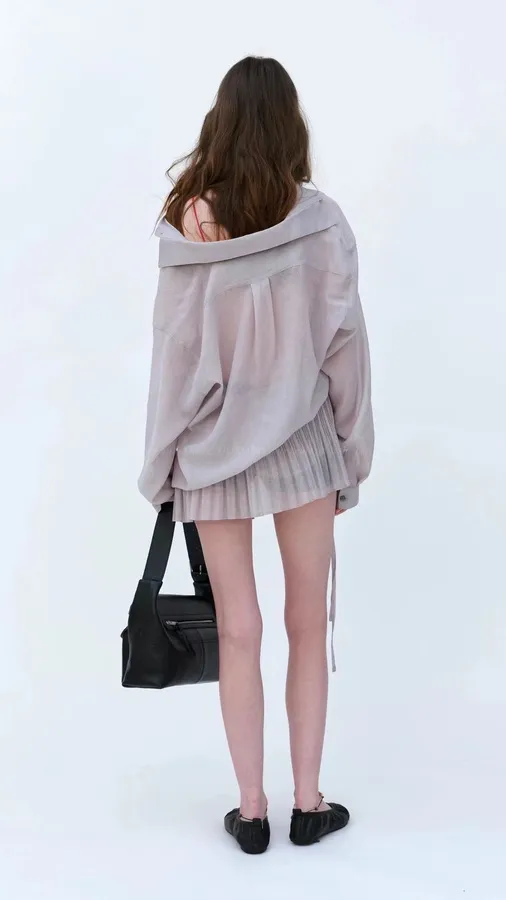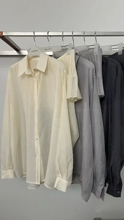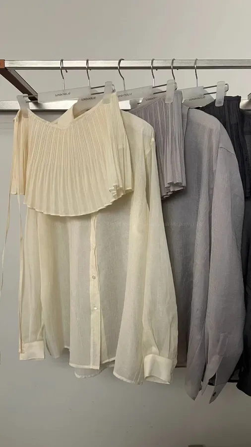H223 壓紋微透肌襯衫 -附造型綁帶簾,客人許願款