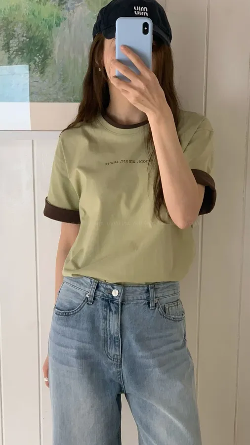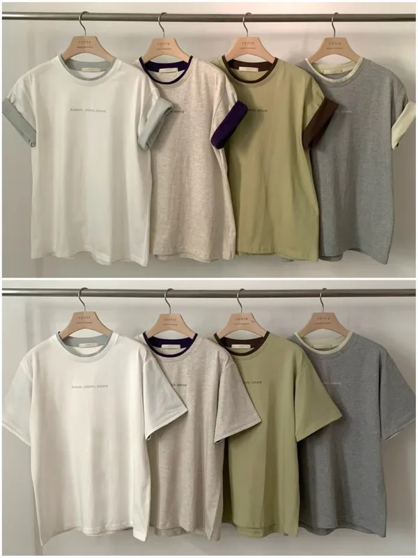 H233 拼色滾邊簡約LOGO T