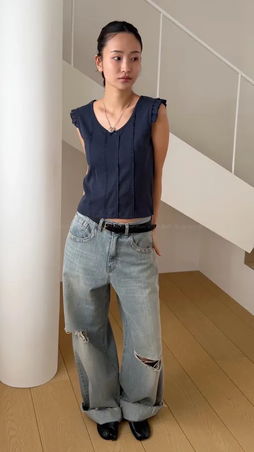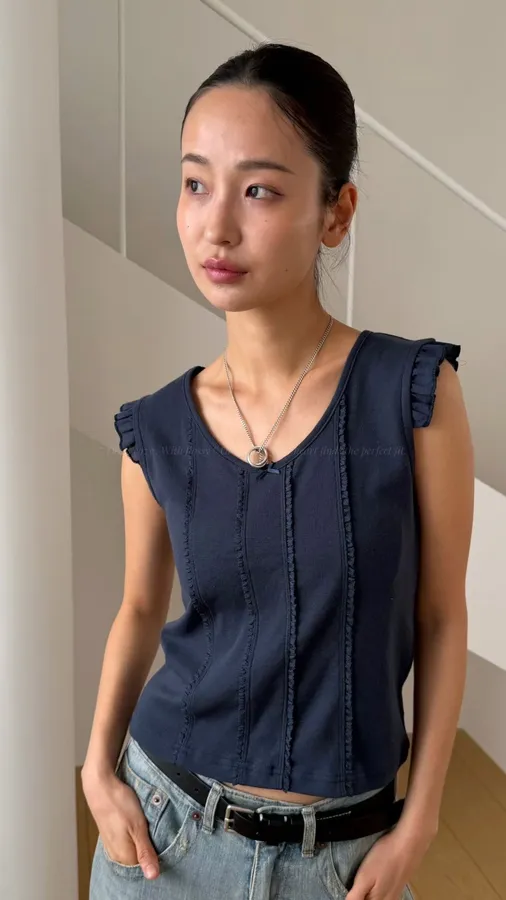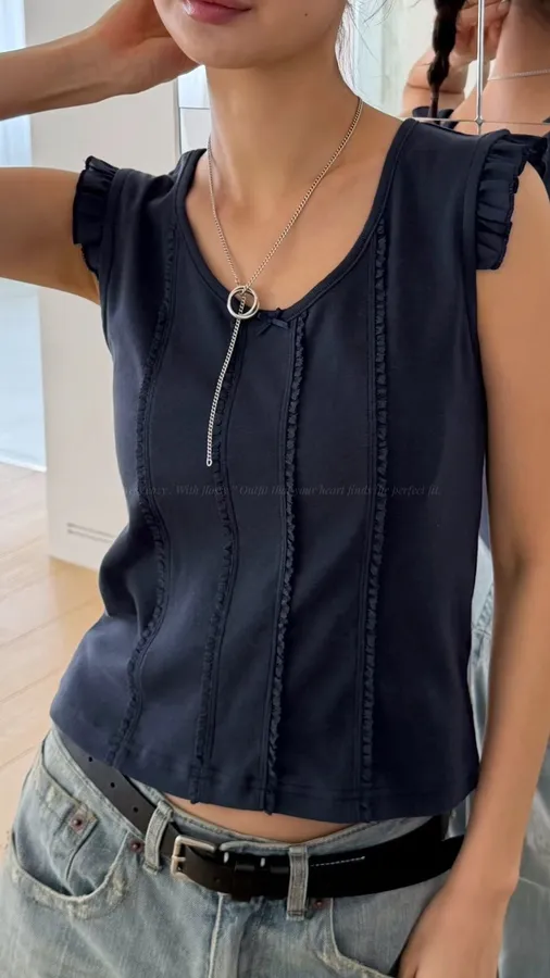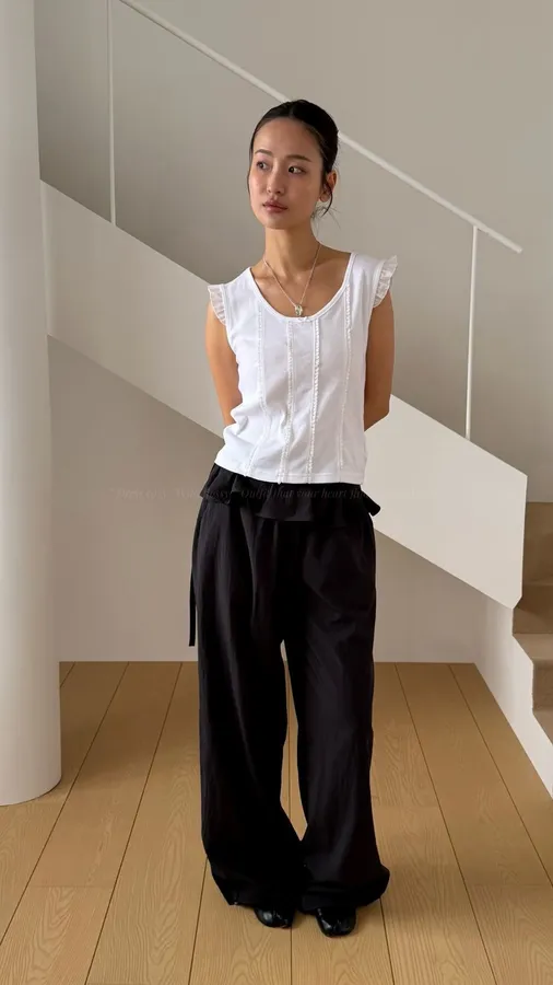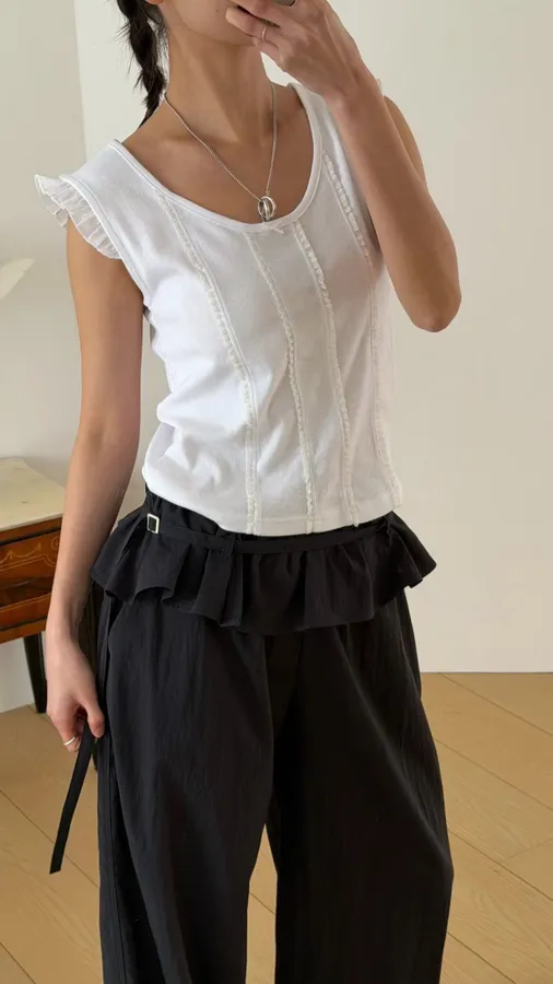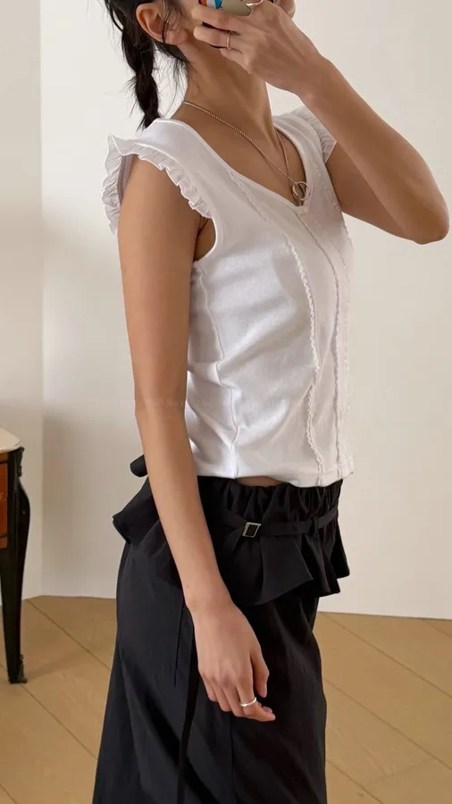H280 壓線造型荷葉袖上衣(必收❤️‍🔥超修身~小眾品牌感,簡約又質感)