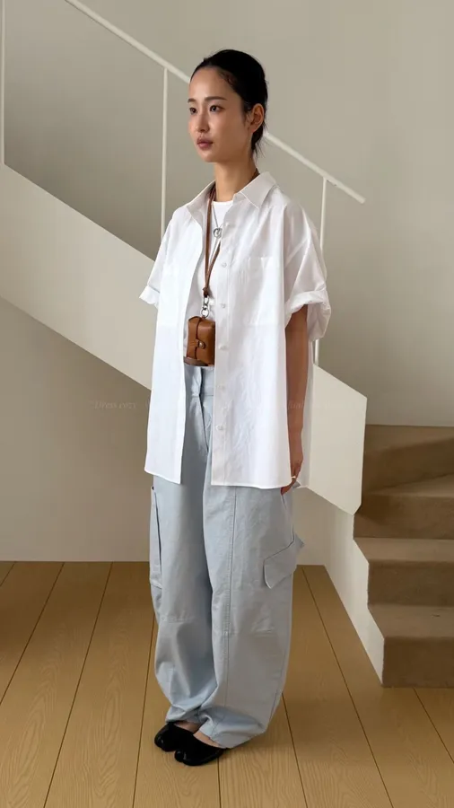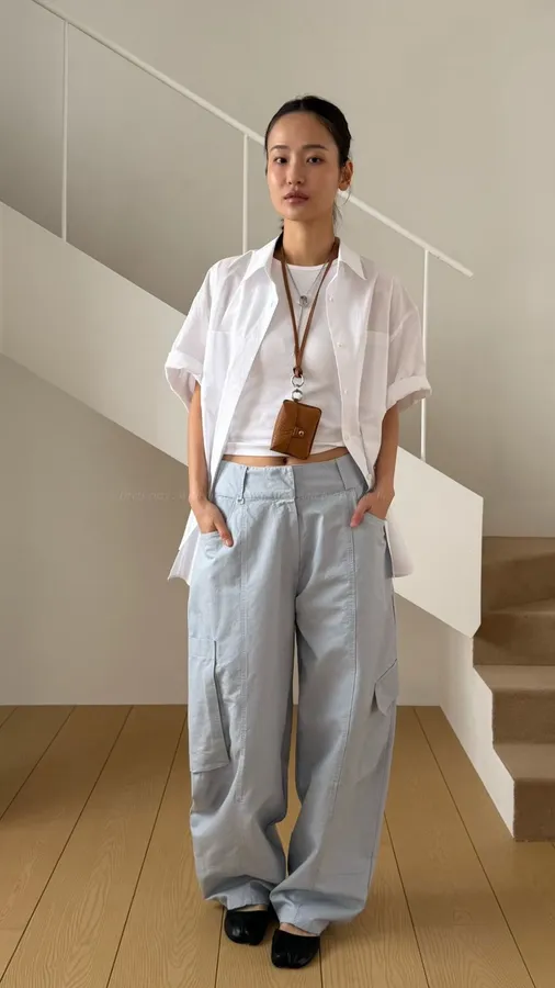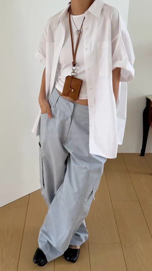 H284 不對稱闊腿工裝褲 -偏大,下單前請參考平量尺寸