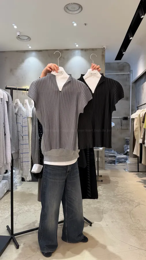 H294 壓褶開V剪裁修身上衣