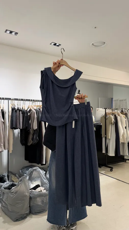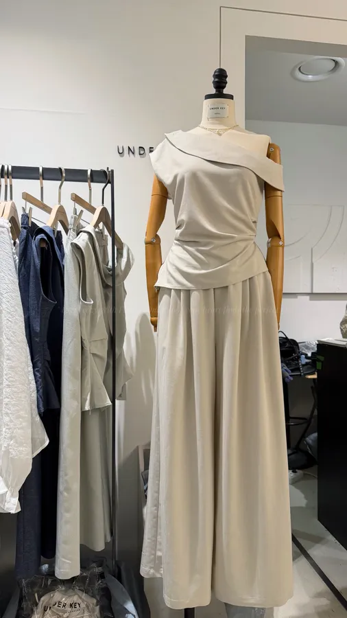H302 5%亞麻53%人造絲斜肩上衣+褲SET💡面料無彈性,上衣記得參考平量尺寸