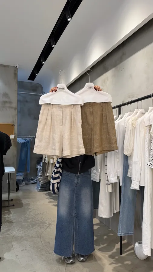 H313 100%亞麻打褶質感五分褲 -偏大,下單前請參考平量尺寸