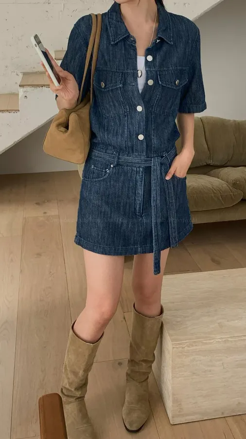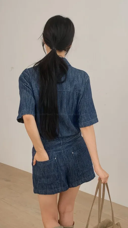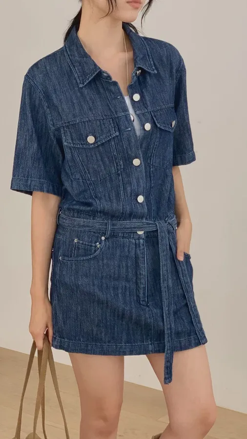 H324 特殊刷色丹寧連身褲裙
