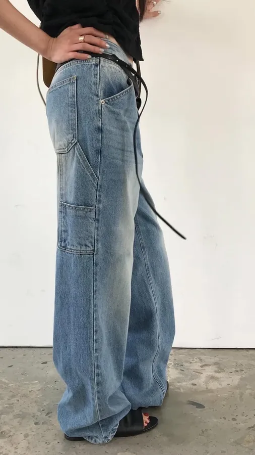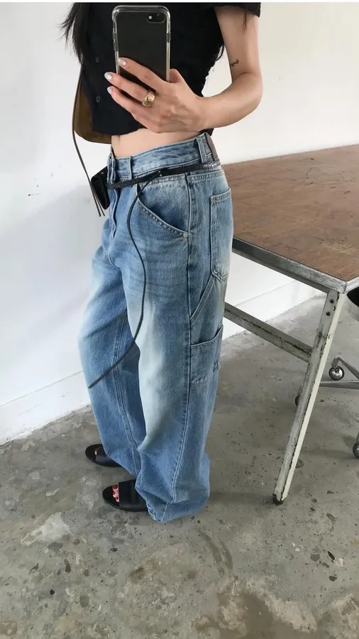 H368 個性刷色長腿牛仔褲