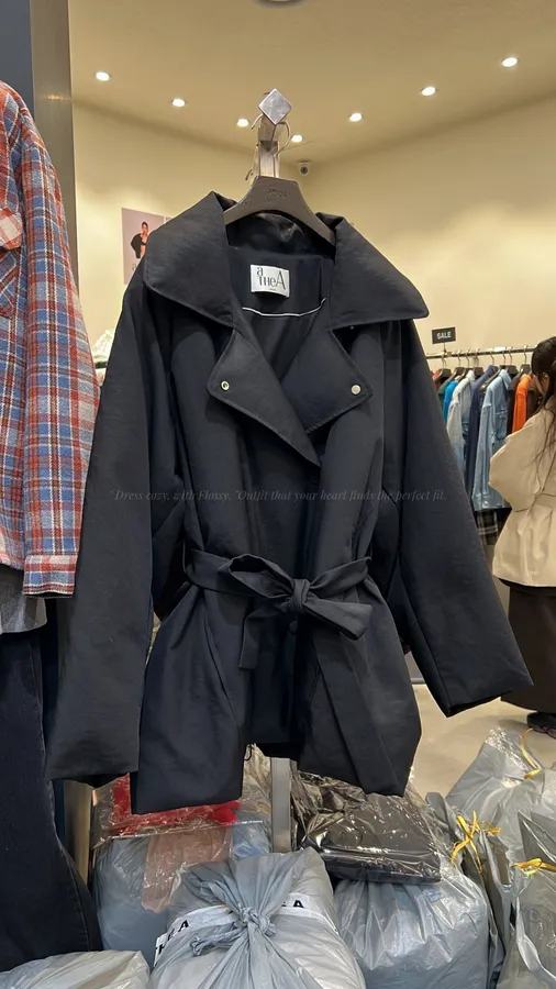 P435 100%鵝絨綁帶質感外套